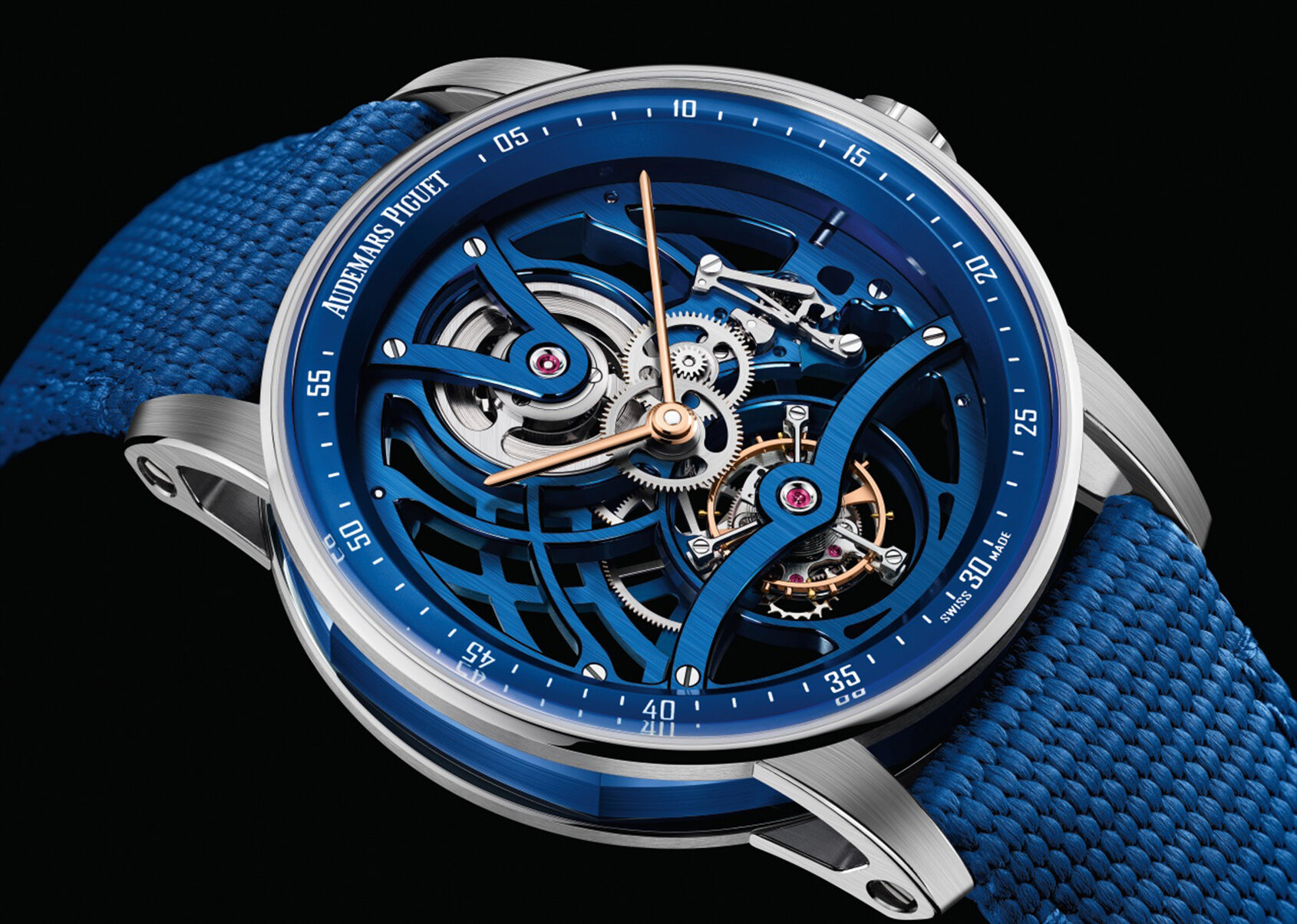 Though the best copy Audemars Piguet Code 11.59 is definitely a far cry from anything like a Royal Oak, this particular reference captures a piece of that white metal and blue dial charm. White gold takes the place of steel, and of course you have the octagonal element in the mid-case which is here made from blue ceramic. The dial, or lack thereof, consists of the Swiss made replica Audemars Piguet Calibre 2948 — a luxurious, hand-finished, skeletonised movement featuring a glorious tourbillon. The manipulate and bridges have been coloured blue using an Atomic Layer Deposition process, while the floating inner bezel matches this thanks to a CVD coating.