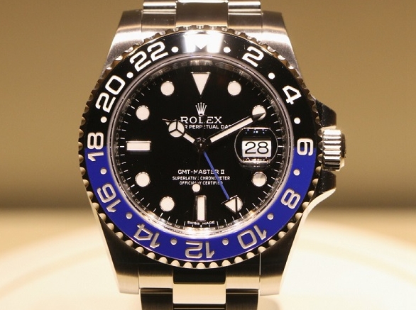 We’re here at Baselworld and Rolex has shown off a couple of new model iterations including a platinum Rolex Daytona and this black and blue colored best selling replica Rolex GMT-Master II watches. Essentially just a new color variation of the current Rolex GMT-Master II range, this new version employs a two color cerachrom bezel insert (a first for Rolex) in a day/night arrangement of blue and black.