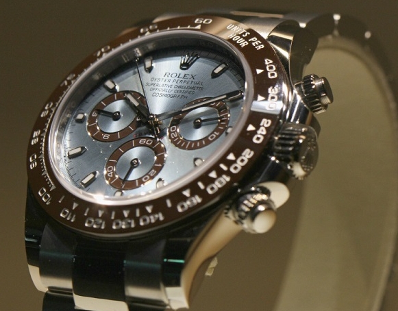 Alongside the black and blue Rolex GMT-Master II is a new blue and brown platinum Rolex Daytona. This is not the Rolex Daytona that many were expecting. Also still 40mm, this new version features a case and bracelet made of 950 platinum along with a light blue dial and brown cerachrom bezel. New colors and metals aside, the platinum Rolex Daytona (ref 116505) is powered by the Calibre 4130 COSC automatic chronograph movement with 72 hours of power reserve. This new version comes on the year of the Rolex Daytona’s 50th birthday and while the color combo is interesting, many were expecting a brand new model with an updated case size. While it is totally possible that AAA Rolex replica watches are still planning to celebrate the Rolex Daytona’s 50th with an official model, it doesn’t look as though Basel will be the host for that announcement. Now that high quality Rolex clone watches are the official sponsor for Formula One, they may have a more race-focused and Rolex Daytona-appropriate stage for such news, only time will tell. For now, it is safe to say that while the new platinum 2013 Dayonta may prove to be a successful replica watches UK, many BaselWorld attendees were expecting something completely different.