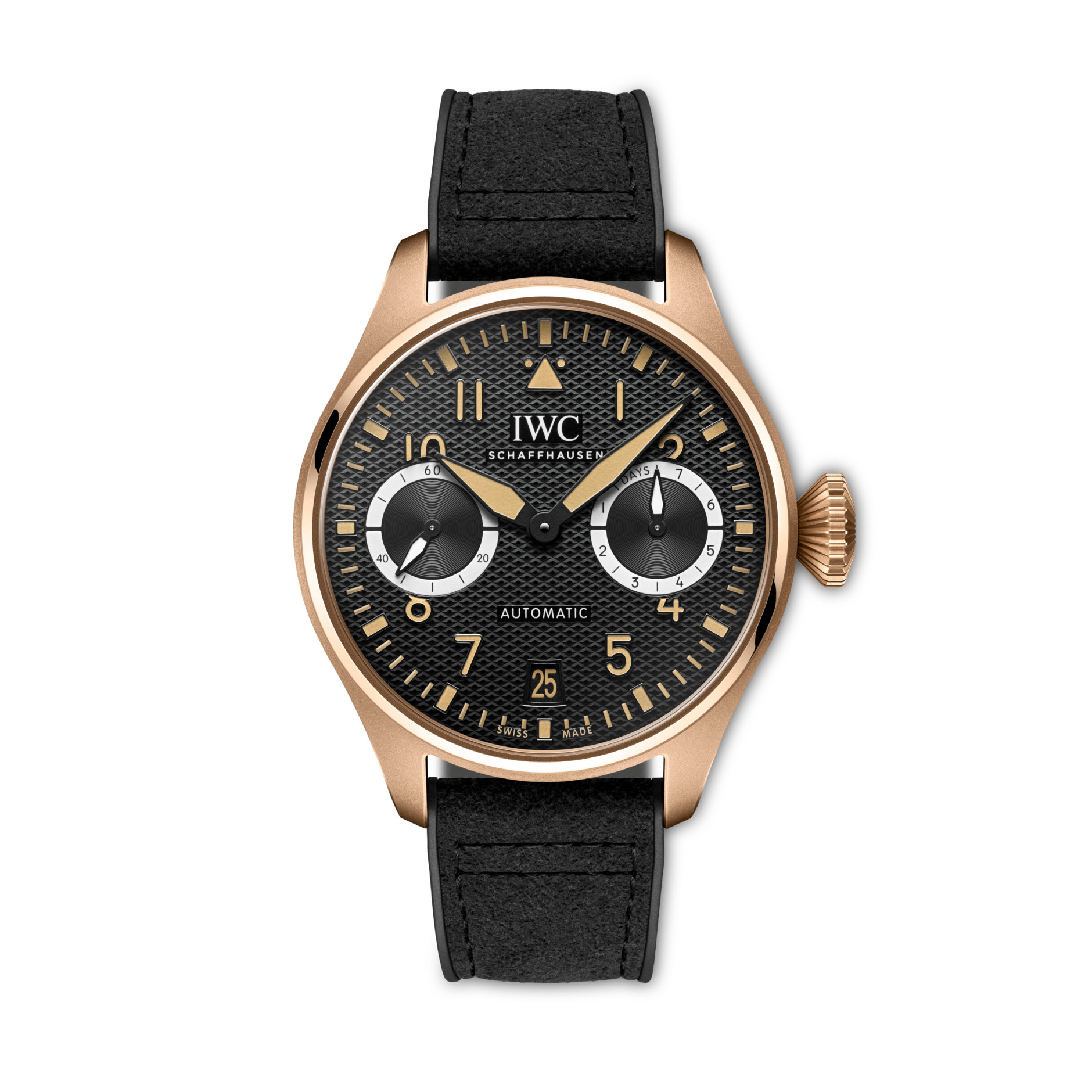 In addition to the cheap replica IWC Big Pilot’s characteristic power reserve display at 3 o’clock, both new editions feature a small second counter at 9 o’clock. The opposing subdials with external white rings imitate the typical headlights on the front side of the G-Class. The black dials are embossed with a relief-like technical structure inspired by the air intakes of Mercedes-AMG performance cars. Unlike the classic 1:1 super clone IWC Big Pilot’s Watch, which has printed numerals and indices, these special editions feature appliques that have been PVD-coated in black and filled with luminous material.